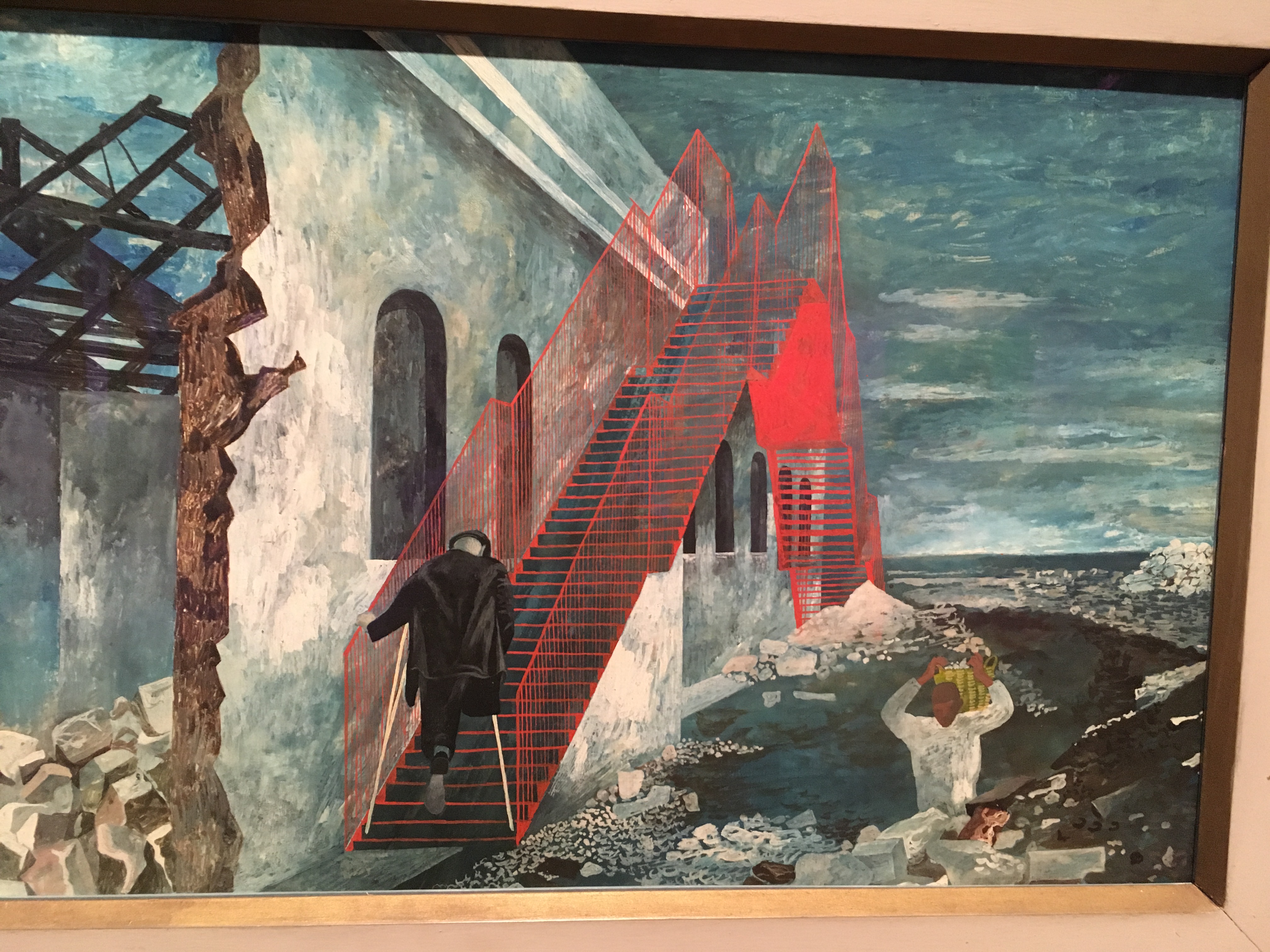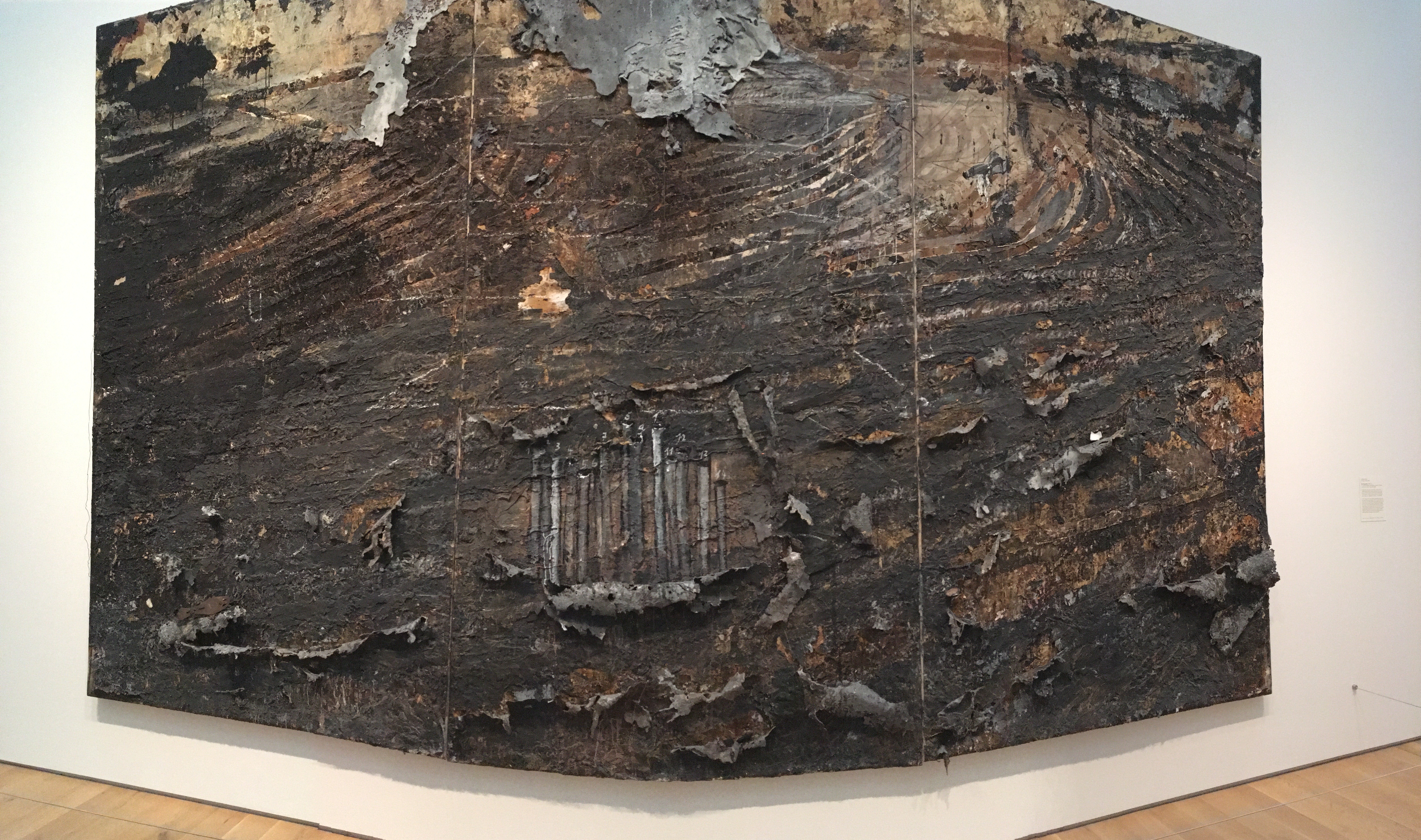 I first saw Anselm Kiefer’s work here in this museum decades ago, the only other time I was here, stumbling upon a whole Kiefer exhibition. I was electrified by it, stunned, charged with emotion that I could not explain then and cannot explain now. I’ve sought out his work ever since. And here they still have two monumental works on display: The Breaking of the Vessels (which I only took video of and alas this blog will not let me post video) and Burning Rods, a huge piece that Kiefer created after Chernobyl. A landscape devastated, peeling away, furrows of crops that will never again be harvested. Look, he says, look. Look what we’ve done.