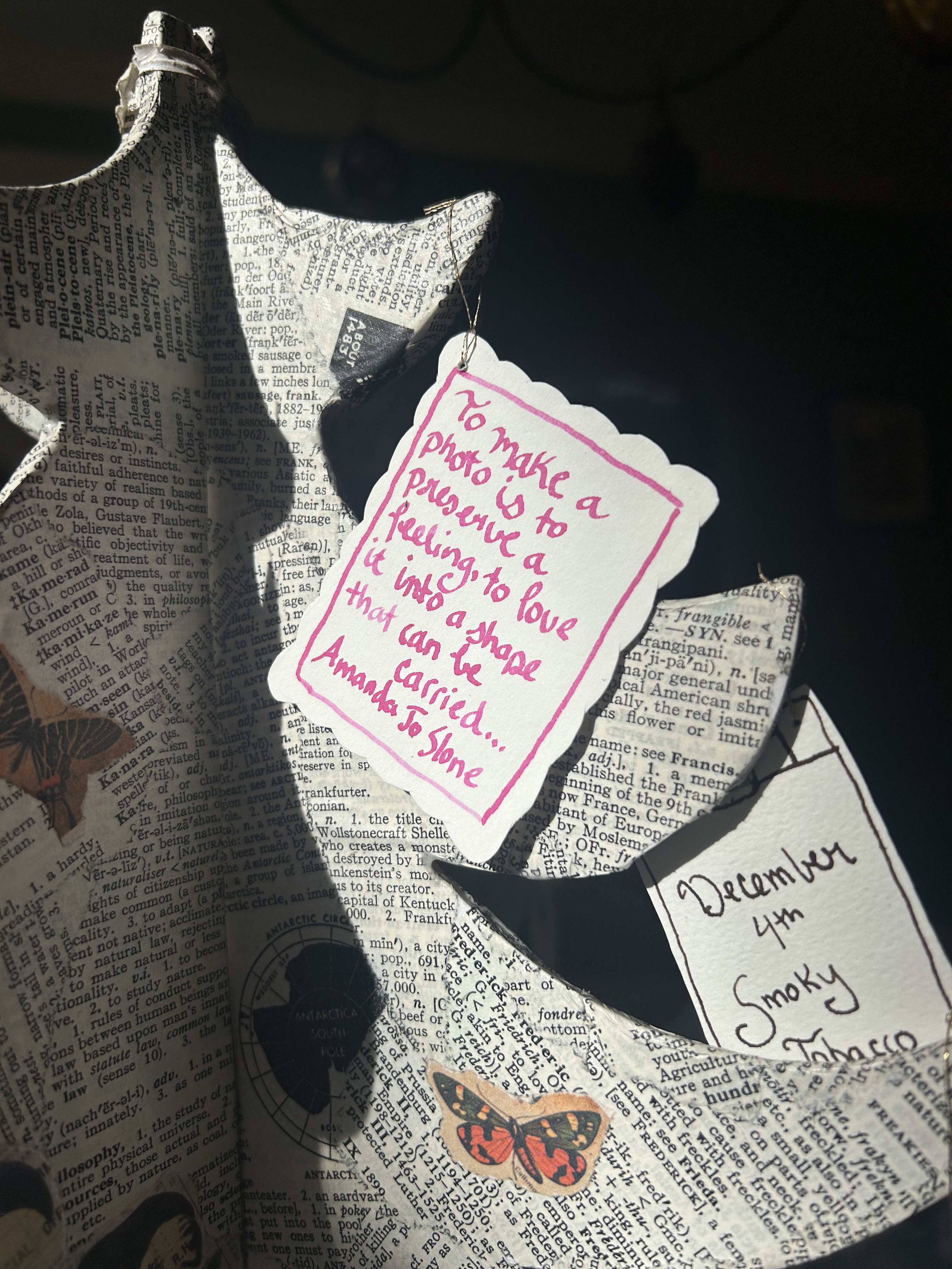The line on the ornament is from an essay she wrote for Troublesome Rising about the work of salvaging artifacts and archives from the 2022 flood in Eastern Kentucky.