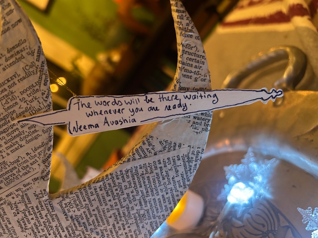 My Advent Tree this year is dedicated to my writer friends and teachers. I am so grateful for all the light you shine in the darkness.