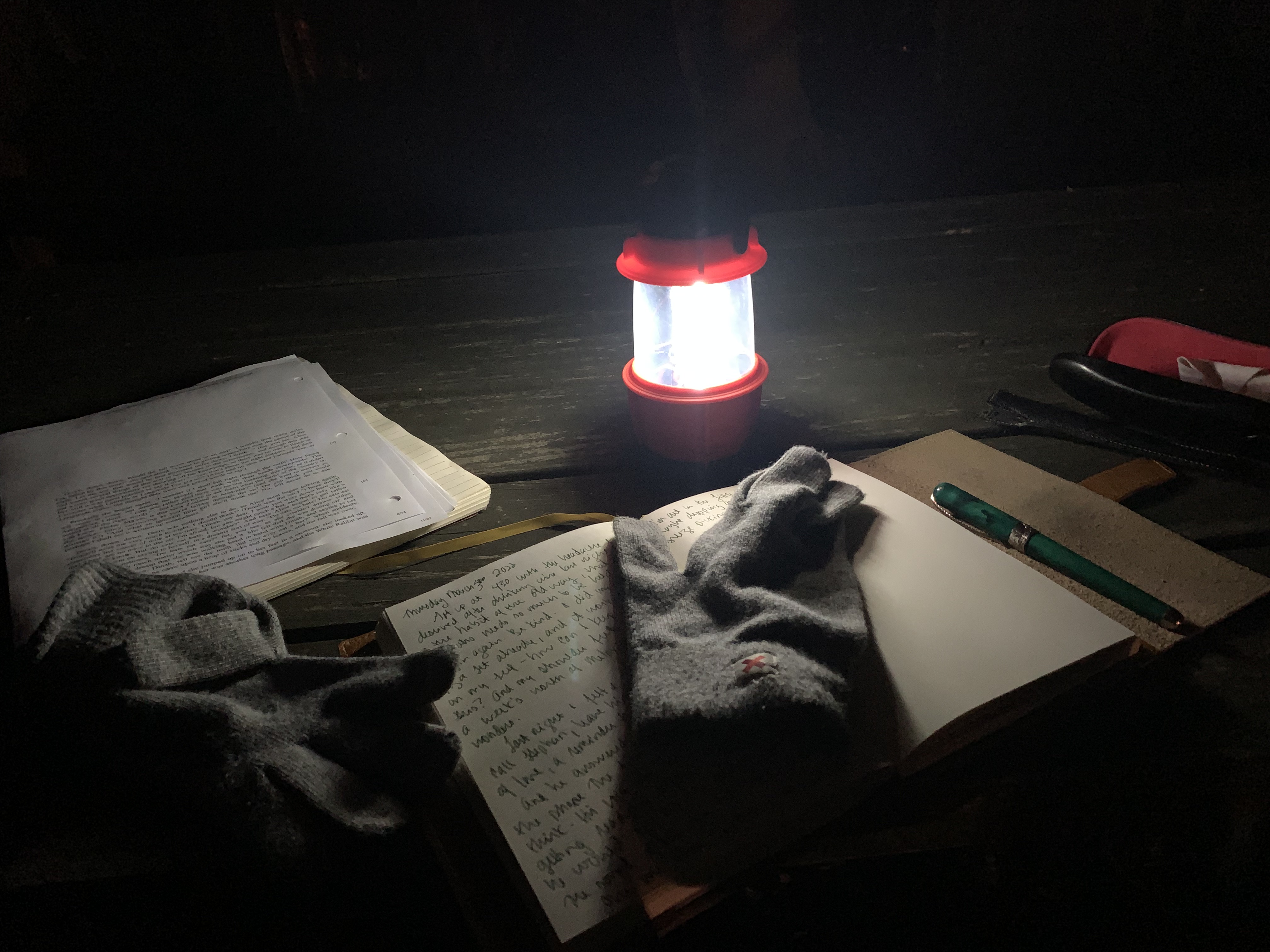 I’m in love with a picnic table in the Little Wood where I write by lantern light before the dawn.