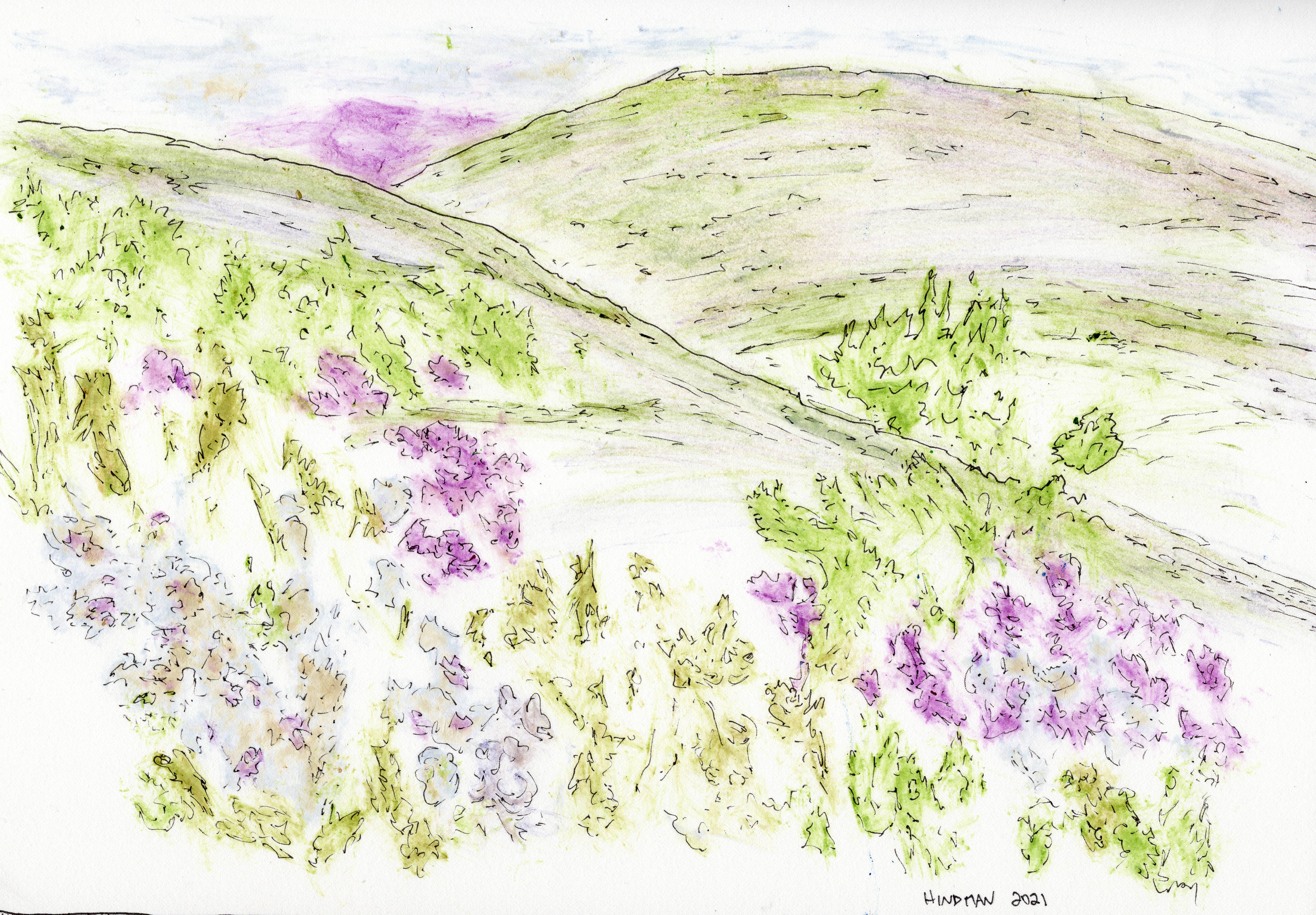 It is fully night and I need to turn my thoughts to bed, the book I am reading before sleep, the rest, the dreams that will come whether I want them to or not. The school where I teach is gearing up to have students back in the building for the first time in over six months, in a wildly different school day as we try to keep everyone safely distanced. There is much craziness to navigate involving the simultaneous teaching of students in the room, on video to different pods of the same grade level and students opting to stay at home on Zoom. I cannot begin to describe it all tonight. If I try, I’ll never fall asleep. If I check the news on Twitter, I’ll never fall asleep either. Better to move the pen across the page. Better to finish the landscape drawing. Better to read the words of a generous soul written long long ago. I am simply being tonight. Tonight I will not argument with myself.